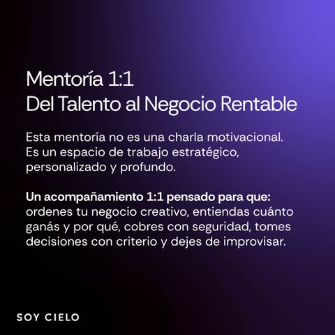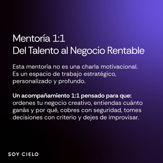 Mentoría 1:1 · Del talento creativo al negocio rentable.
